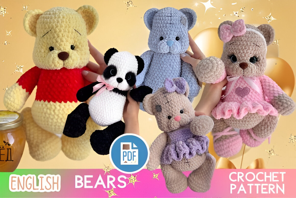 5-in-1 Bear Amigurumi Pattern Bundle – Easy PDF Crochet Guide